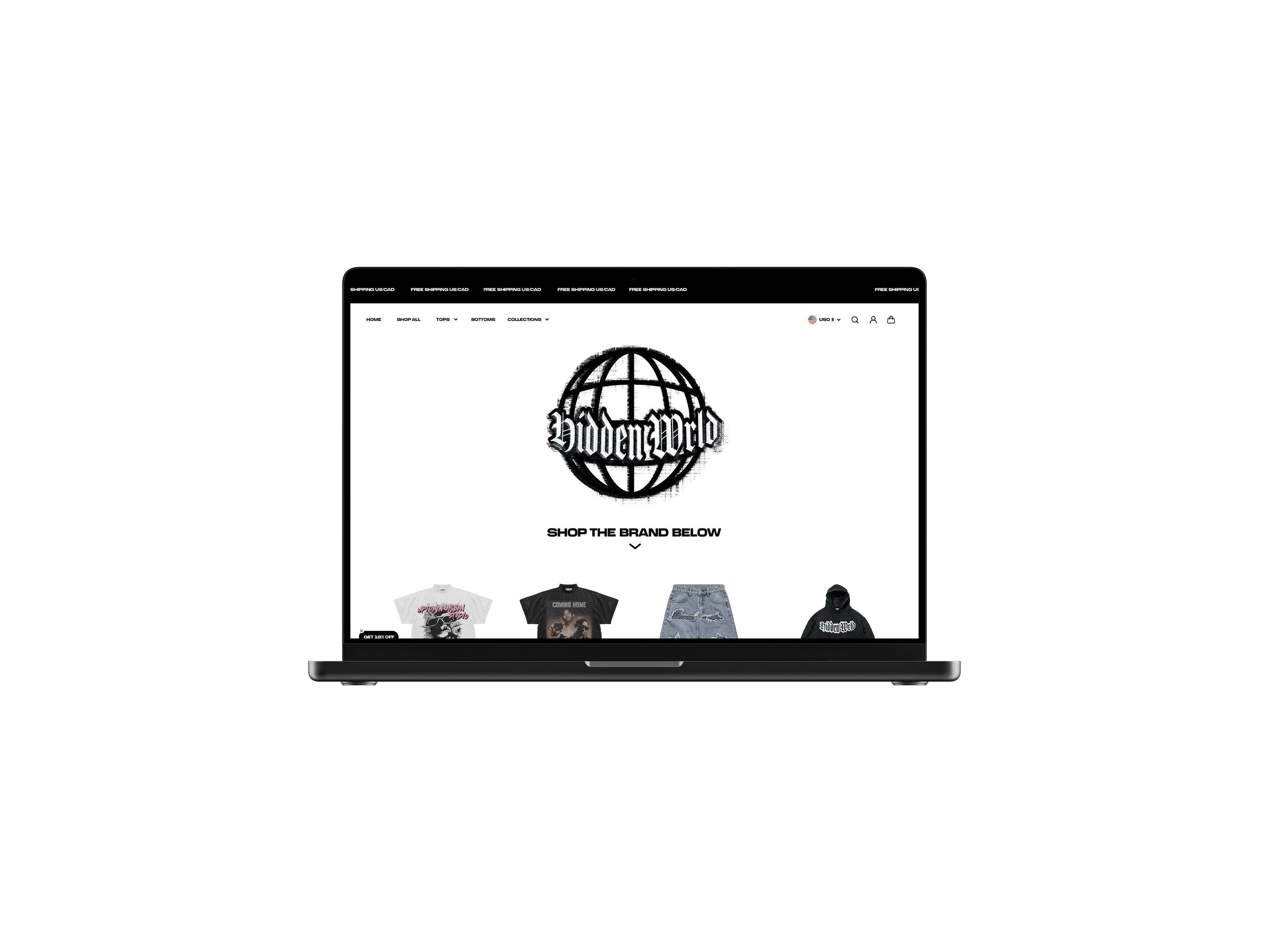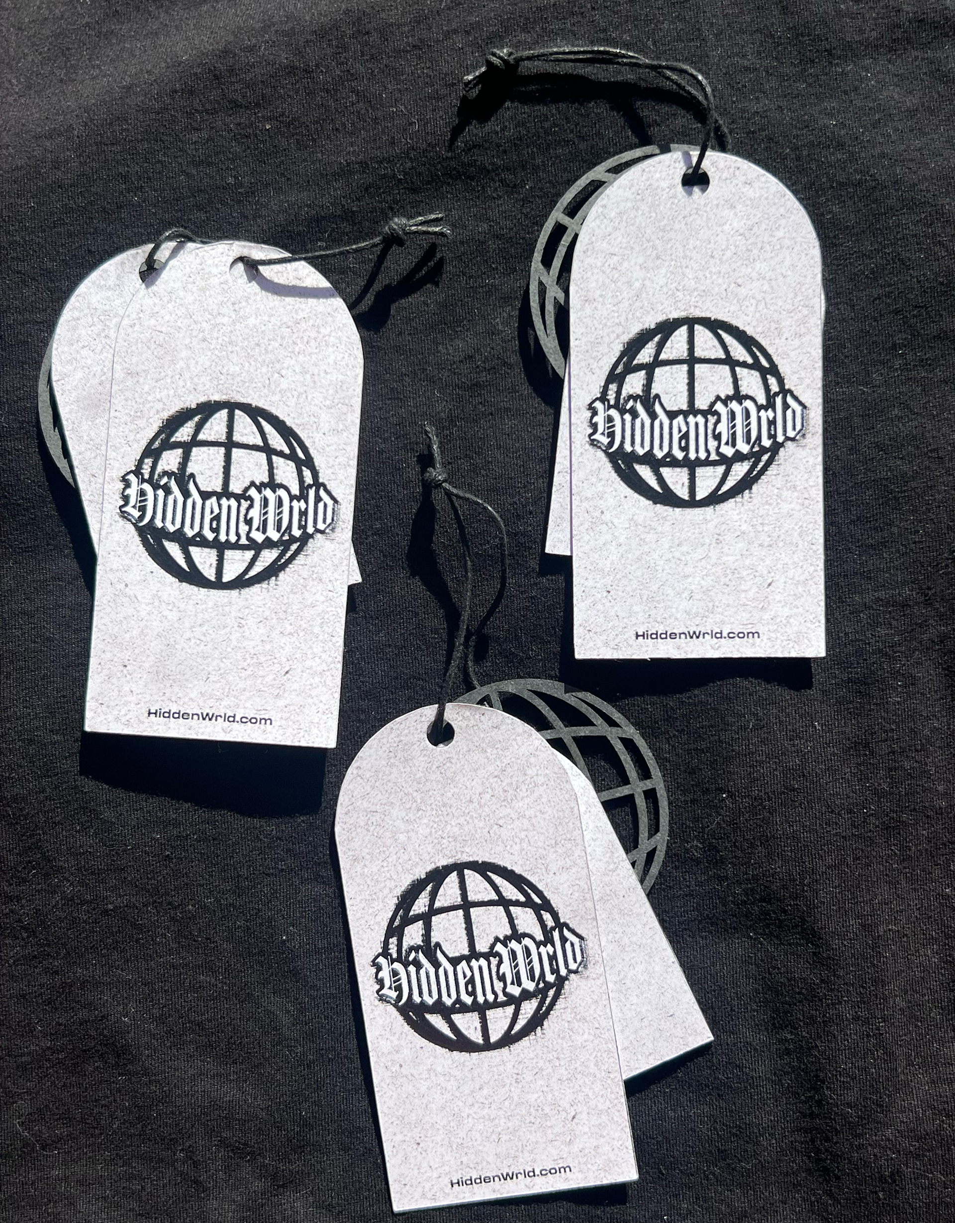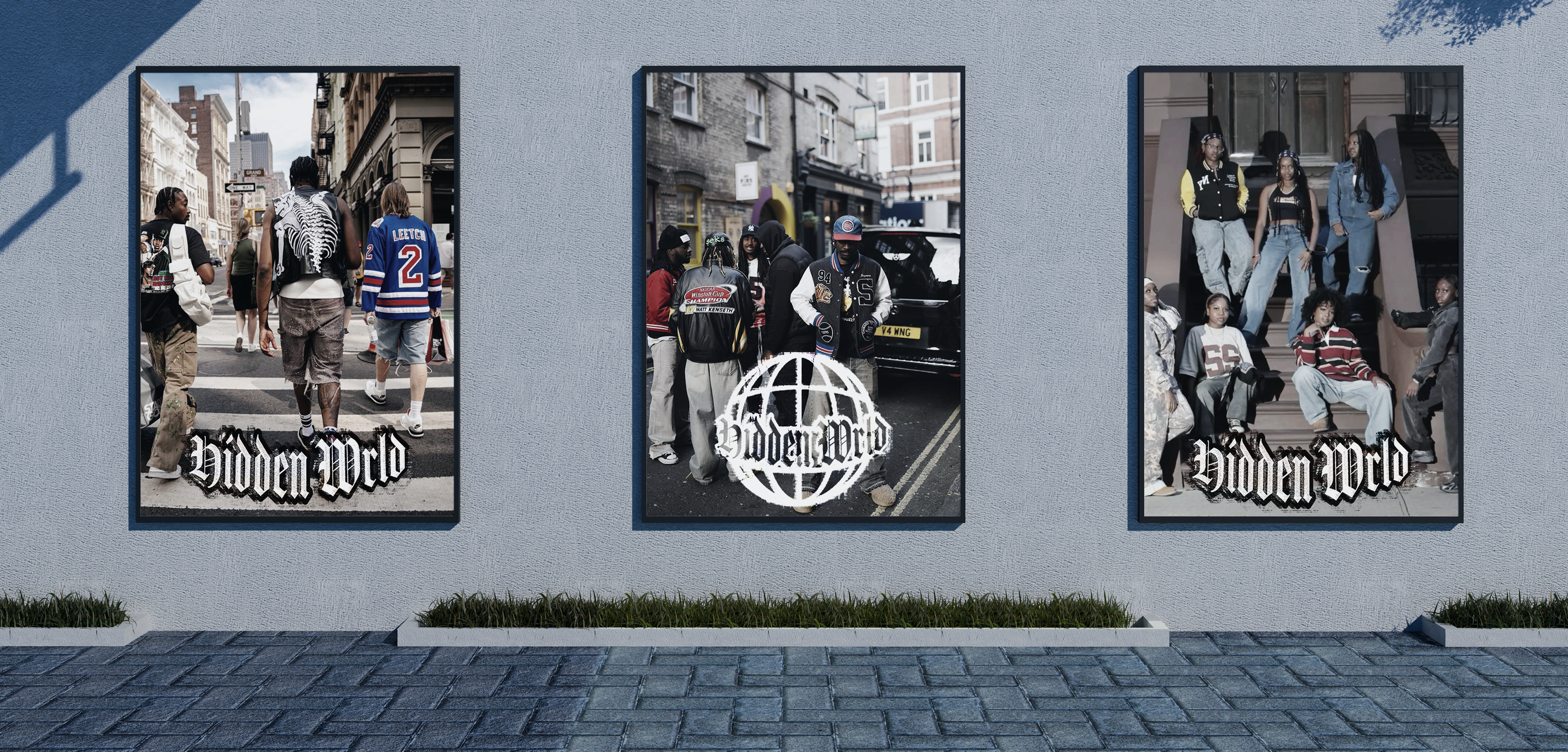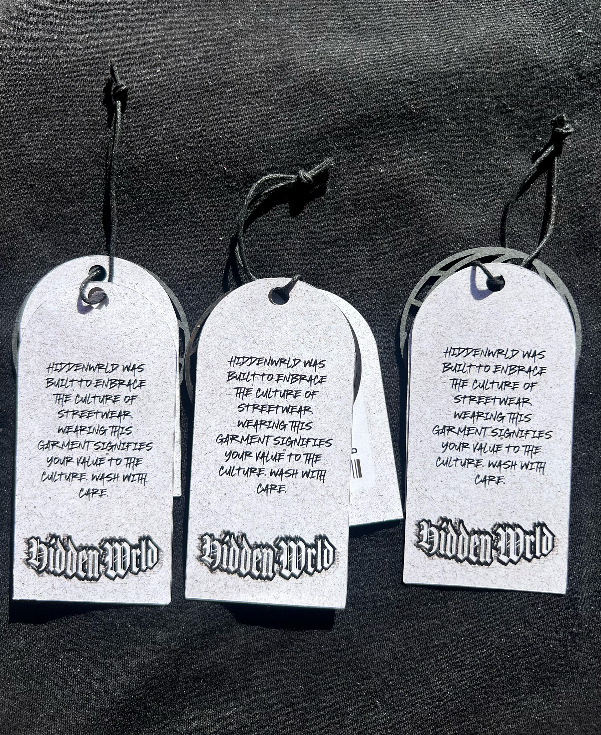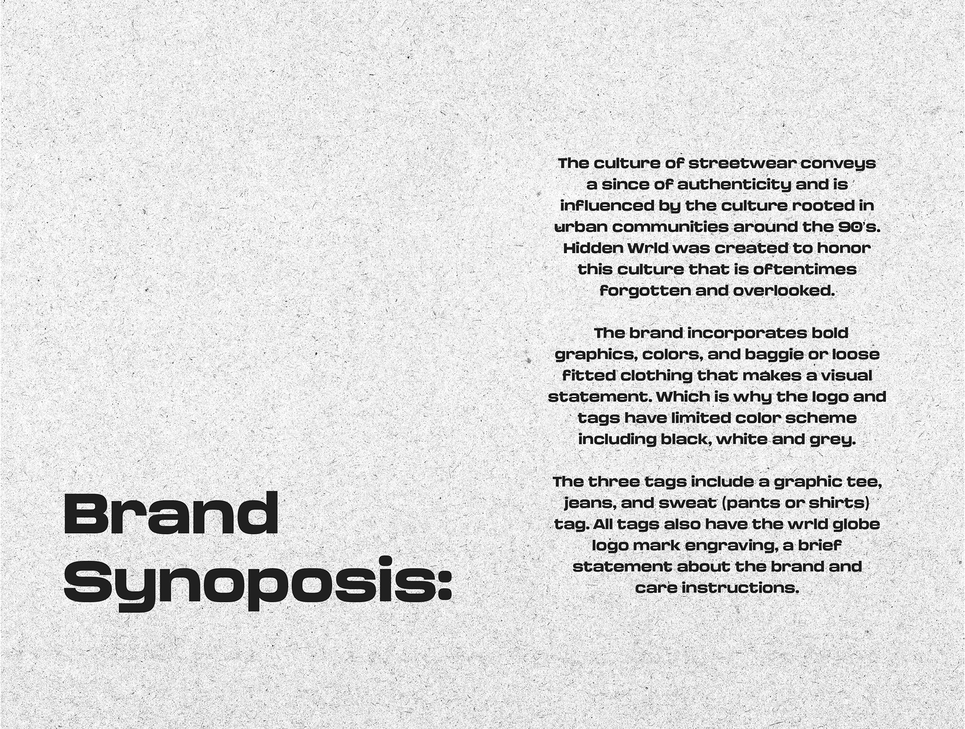 Hidden Wrld is a complete urban streetwear clothing brand full brand identity, including brand name, logo, tags, packaging, marketing , and advertising components.