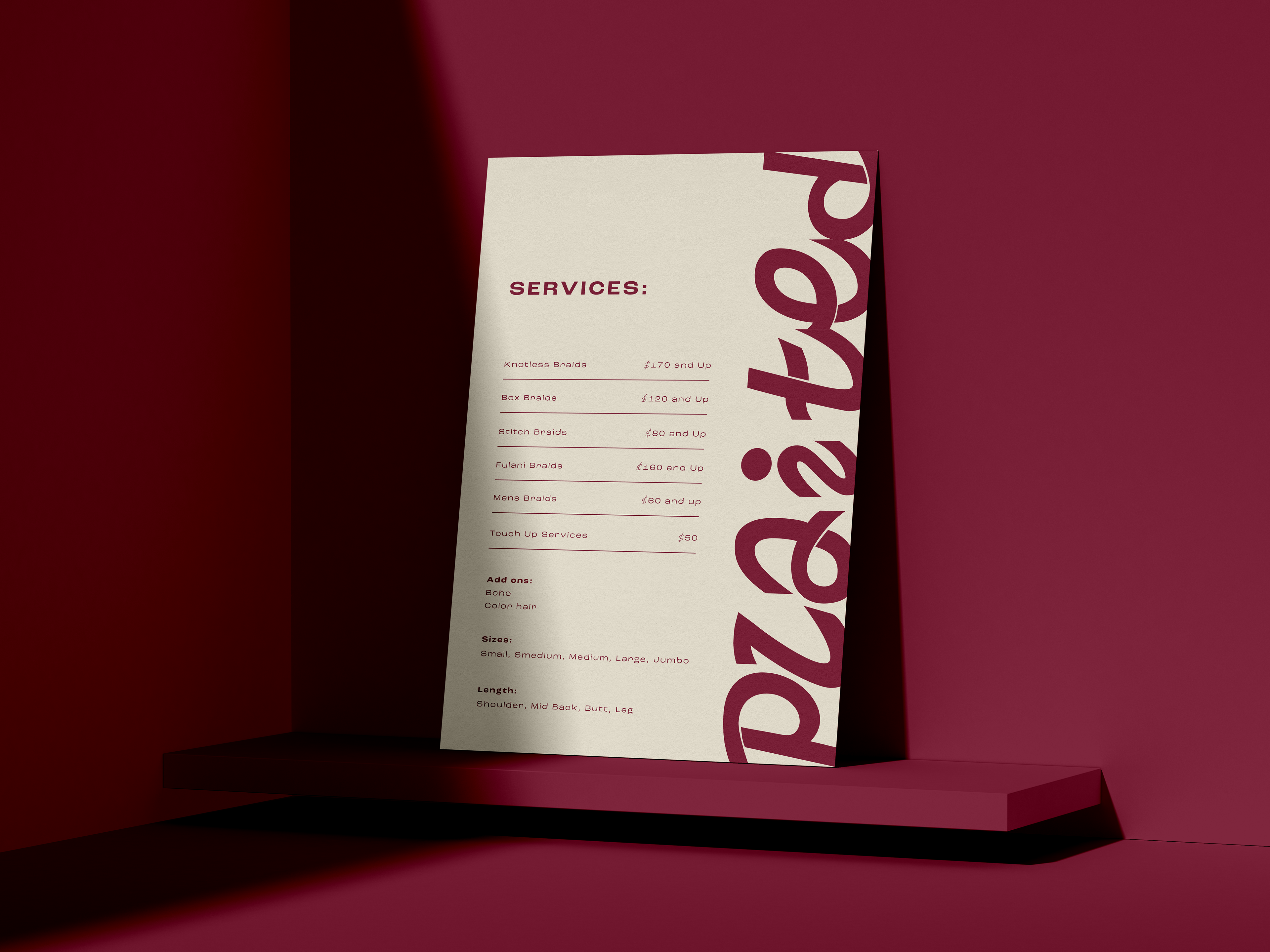 Complete brand Identity for a African American hair braiding salon.